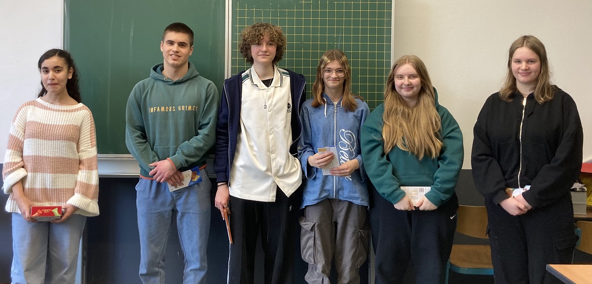 Zum letzten Mal fand am 25. März 2025 der Vorlesewettbewerb der deutsch-französischen Gesellschaft in der Stadtbibliothek statt. Erneut vertraten die SiegerInnen aus den Jahrgängen 8 und 10 die Realschule Heepen – diesmal mit herausragenden Darbietungen – und wurden mit einer Urkunde und wertvollen Preisen für ihre Mühe und Freude am Lesen belohnt.