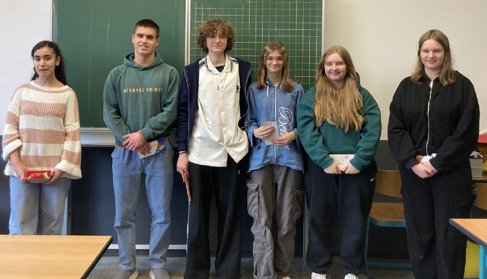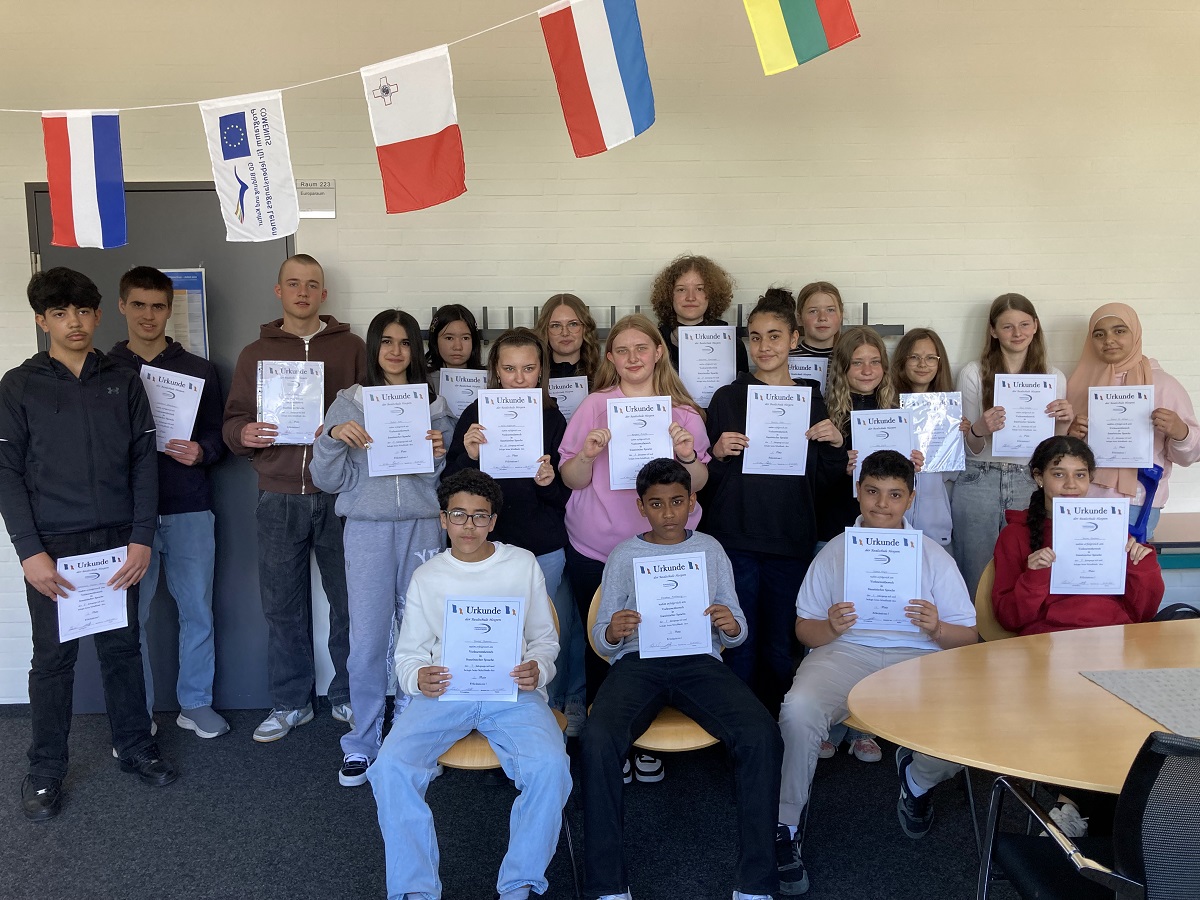 In der Mittagspause des 22. Mai 2025 trafen sich alle VorleserInnen zur Siegerehrung im Europaraum und wurden mit einer Urkunde ausgezeichnet. Belohnt wurde das außerschulische Engagement zudem mit einer positiven Bemerkung auf dem Zeugnis.
