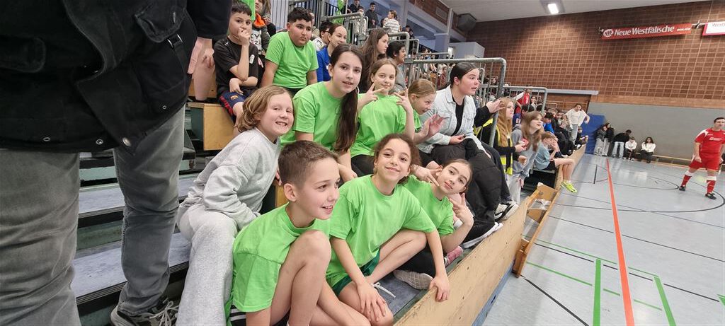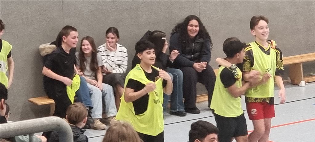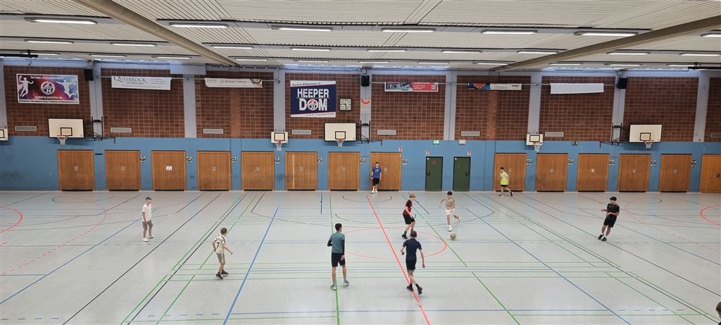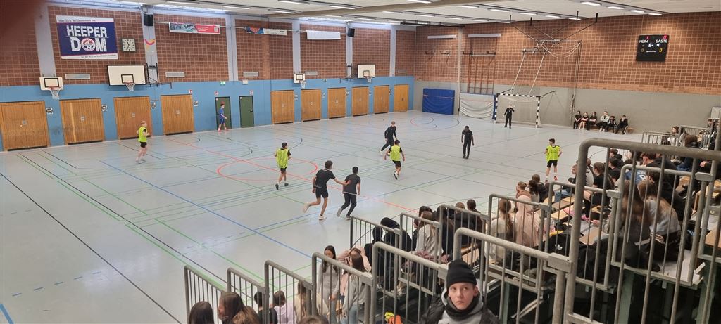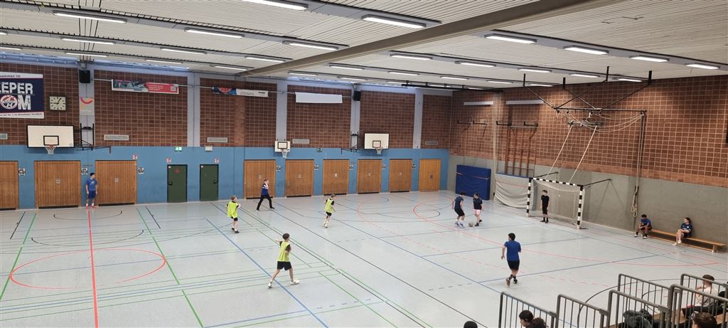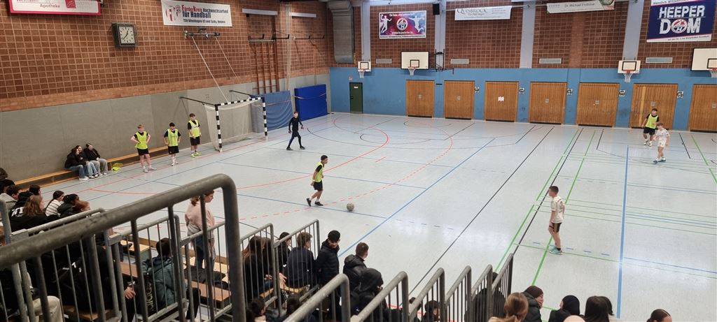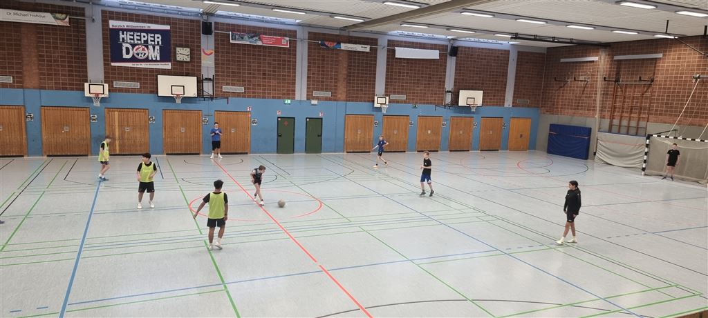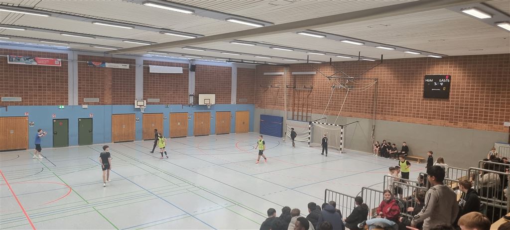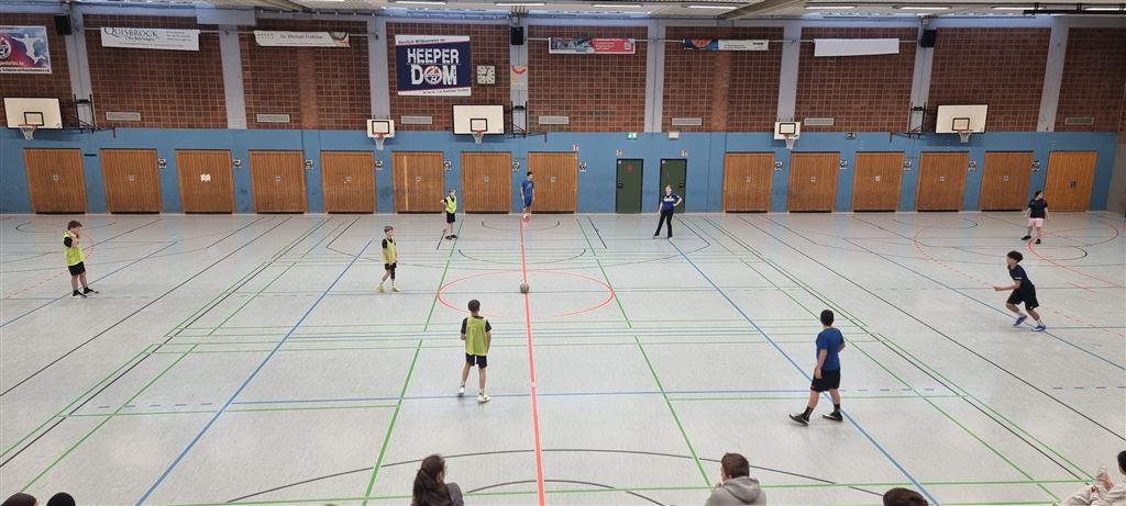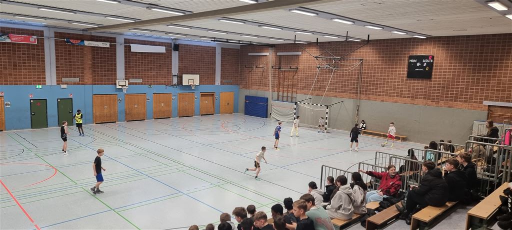 Heute fand in der Sporthalle der Realschule Heepen wieder der erste Tag unseres großen Fußballturniers statt. Wie üblich traten gleich morgens die 9er und 10er gegeneinander an. Es gab wieder Hallenfußball auf höchstem Niveau zu sehen. Im Endspiel der Gruppe trafen die 9a und die 10b aufeinander. Trotz bis dahin höchst erfolgreichem Turnierverlauf musste sich die 10b nach einem hervorragenden Endspiel der überlegenen 9a geschlagen geben. Wir gratulieren zum ersten und zweiten Platz.