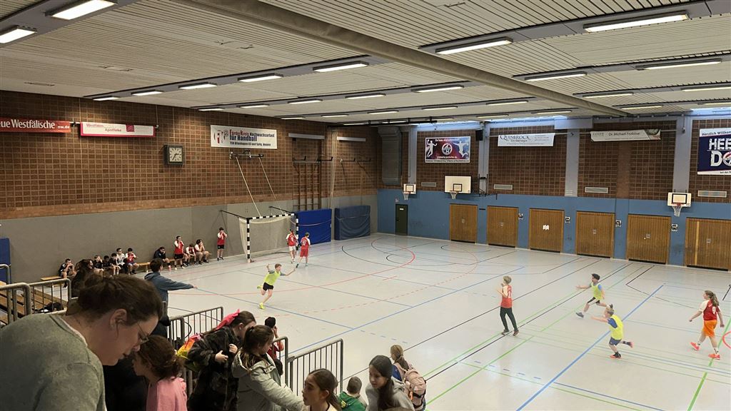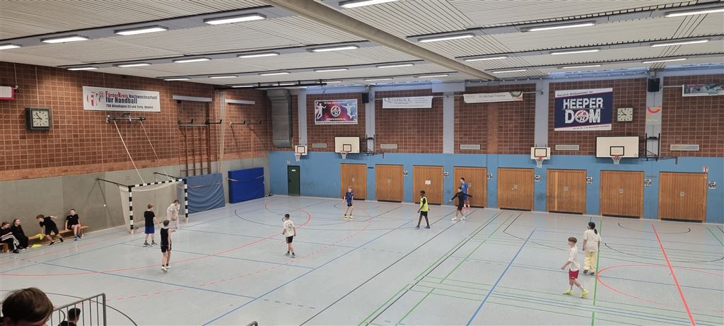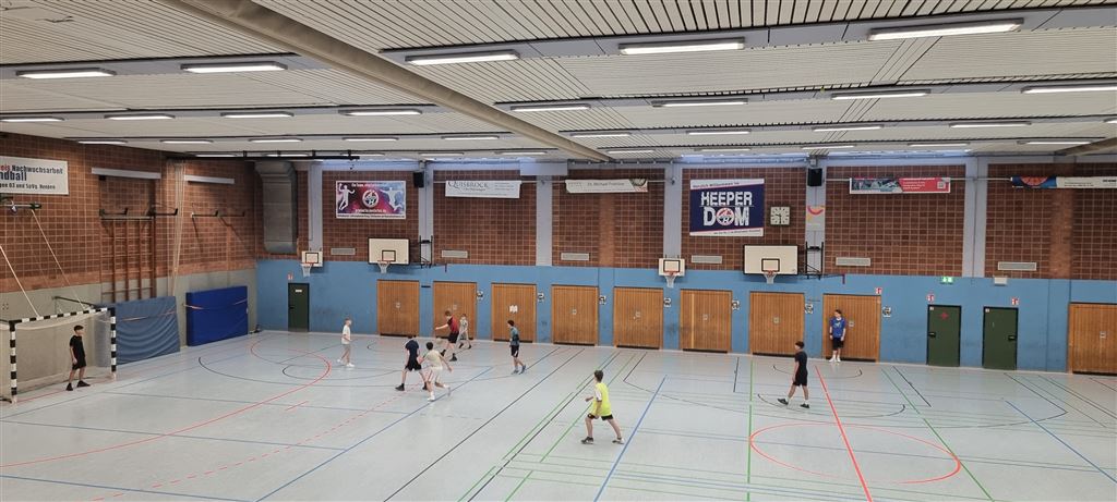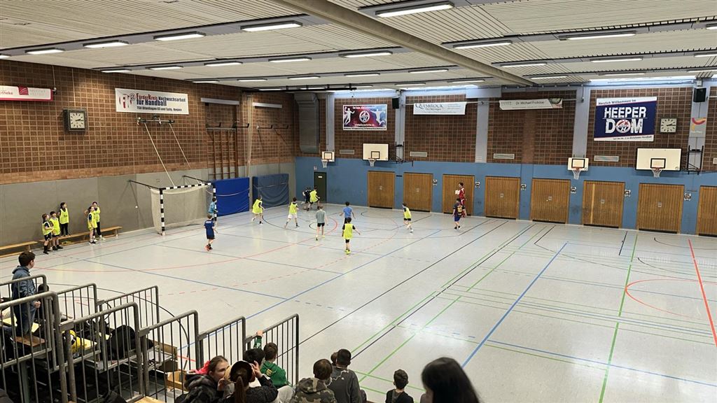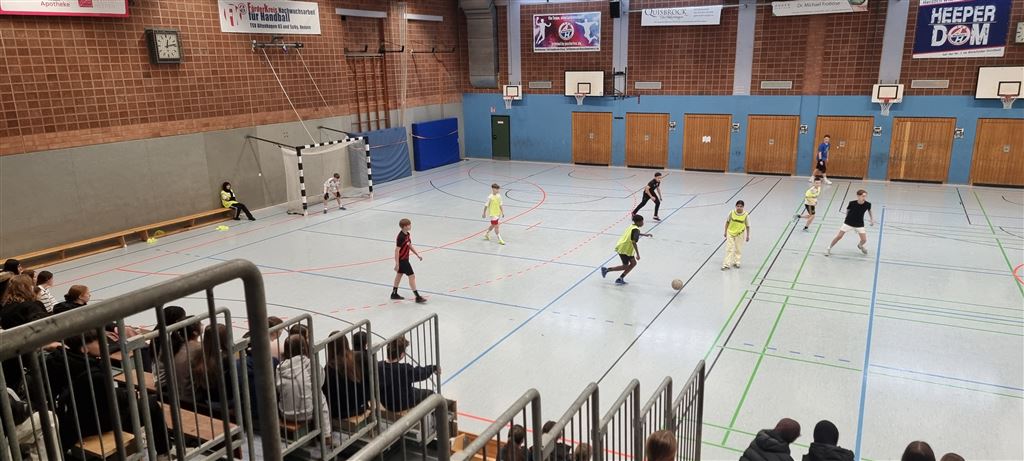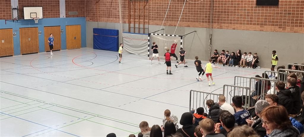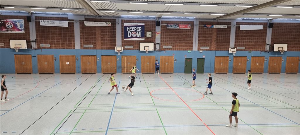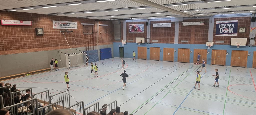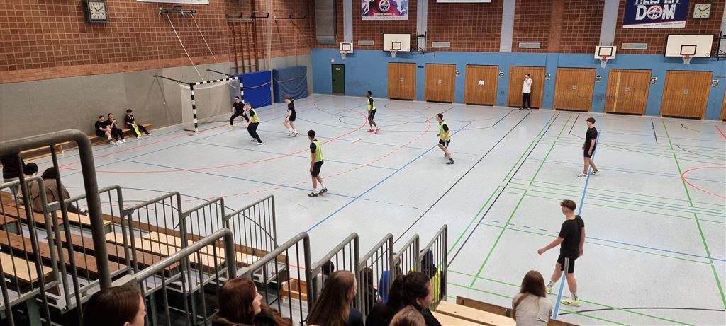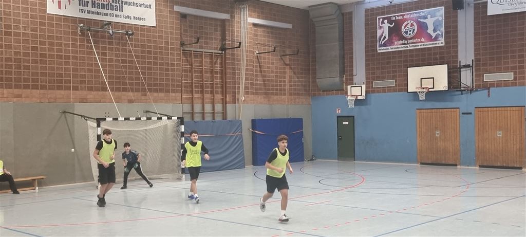 Heute fand in der Sporthalle der Realschule Heepen wieder der erste Tag unseres großen Fußballturniers statt. Wie üblich traten gleich morgens die 9er und 10er gegeneinander an. Es gab wieder Hallenfußball auf höchstem Niveau zu sehen. Im Endspiel der Gruppe trafen die 9a und die 10b aufeinander. Trotz bis dahin höchst erfolgreichem Turnierverlauf musste sich die 10b nach einem hervorragenden Endspiel der überlegenen 9a geschlagen geben. Wir gratulieren zum ersten und zweiten Platz.