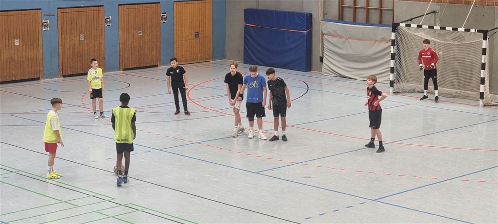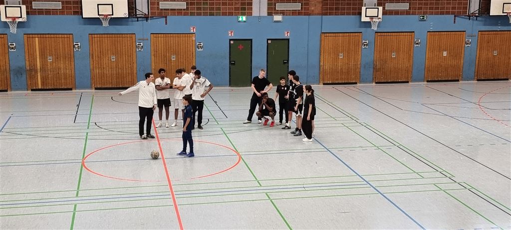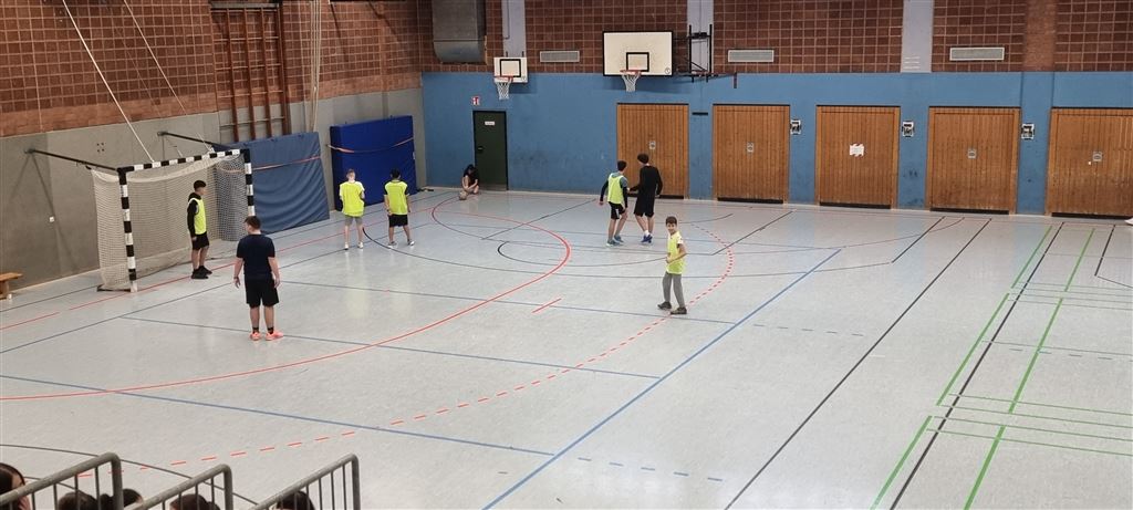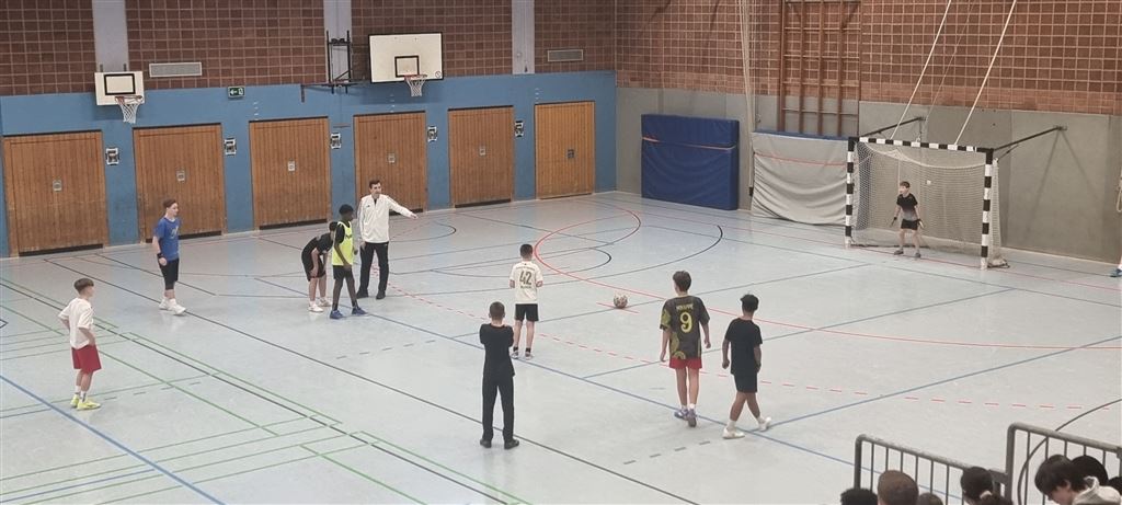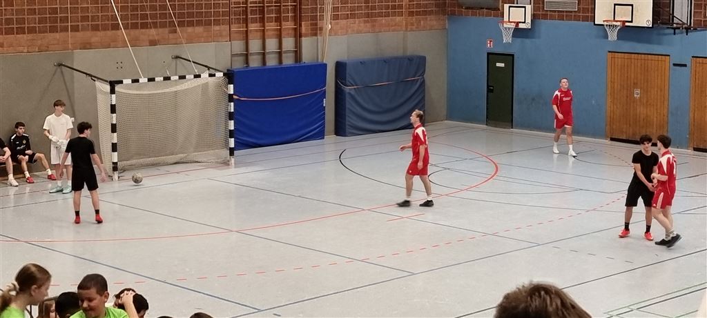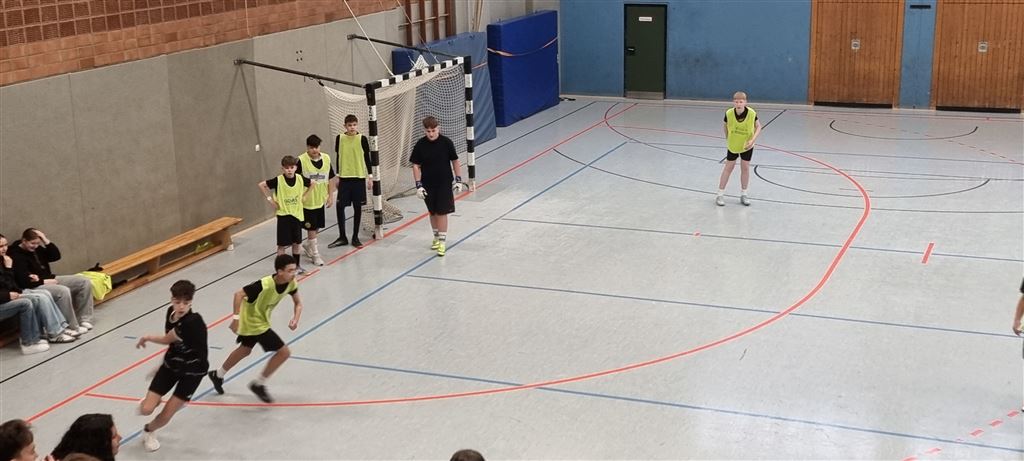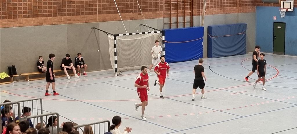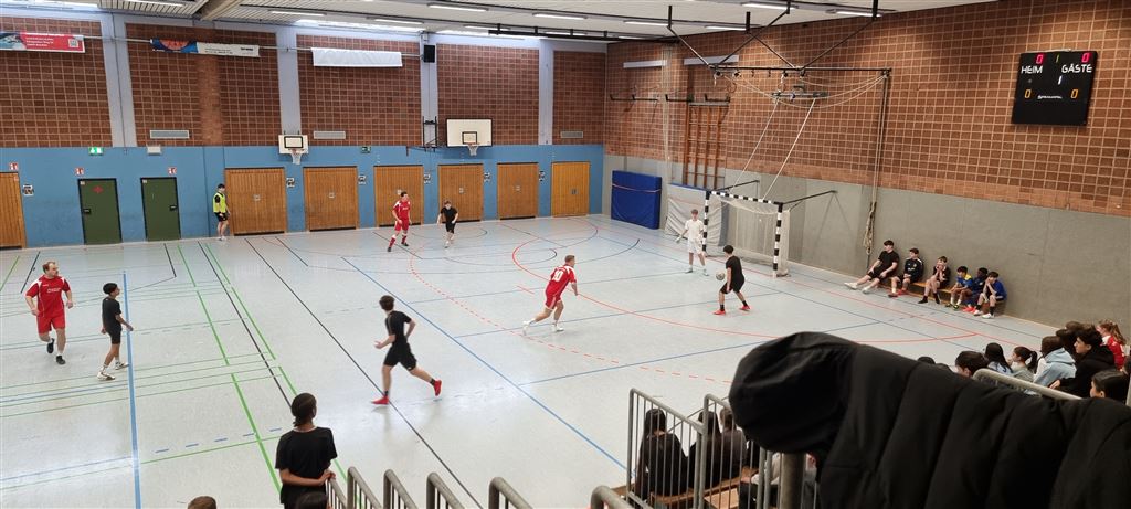 In der Mittagspause spielten dann die Turniersieger der 9a gegen die Lehrermannschaft, die in diesem Jahr durch ihr geringes Durchschnittsalter auffiel. Trotz der starken Auswahl auf Seiten der Lehrerschaft gelang es jedoch in der ersten Halbzeit nicht, ein Tor gegen das konditionell überlegene Team der 9a zu erzielen. Trotz Vorteils der 9er hinsichtlich der Anzahl der Torschüsse musste sich dann die 9a aber in der zweiten Halbzeit durch die bessere Chancenverwertung ihres Gegners geschlagen geben. Das spannende Spiel endete mit einem 2:0. Wir sind gespannt auf ein Wiedersehen im kommenden Jahr!