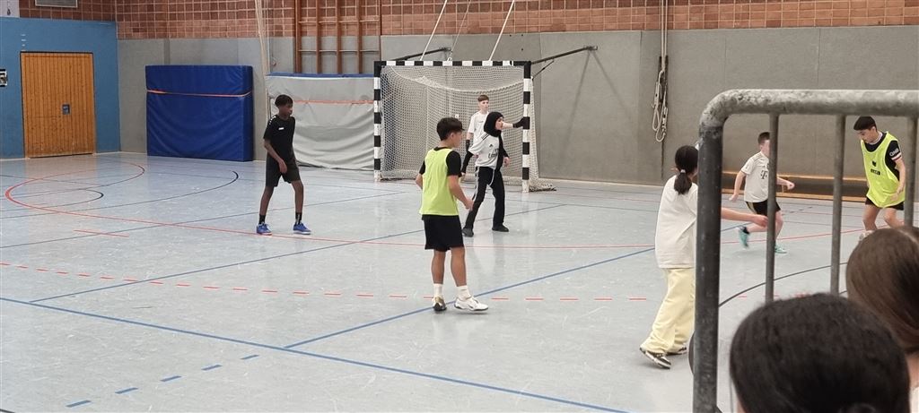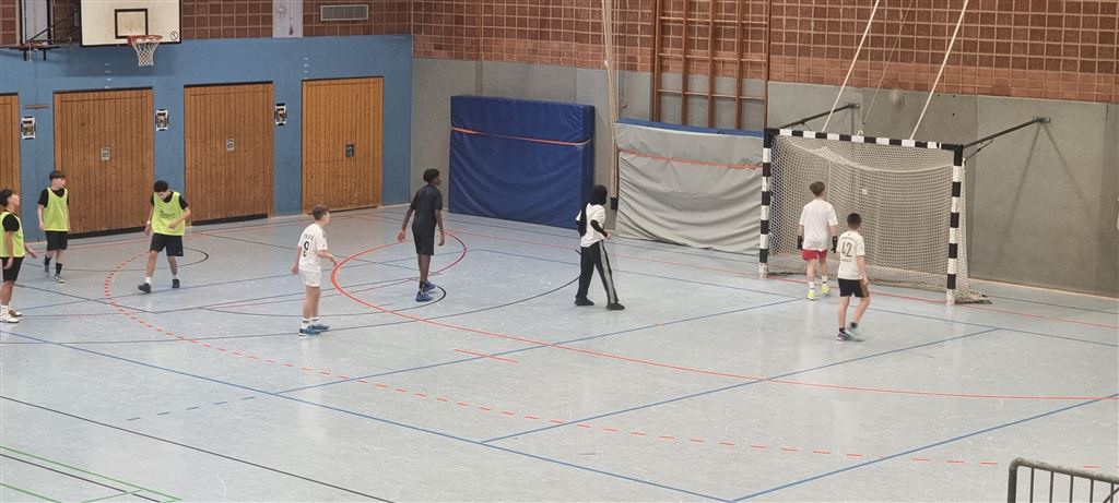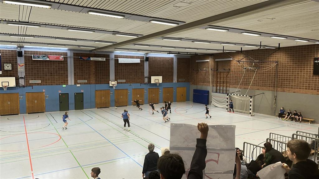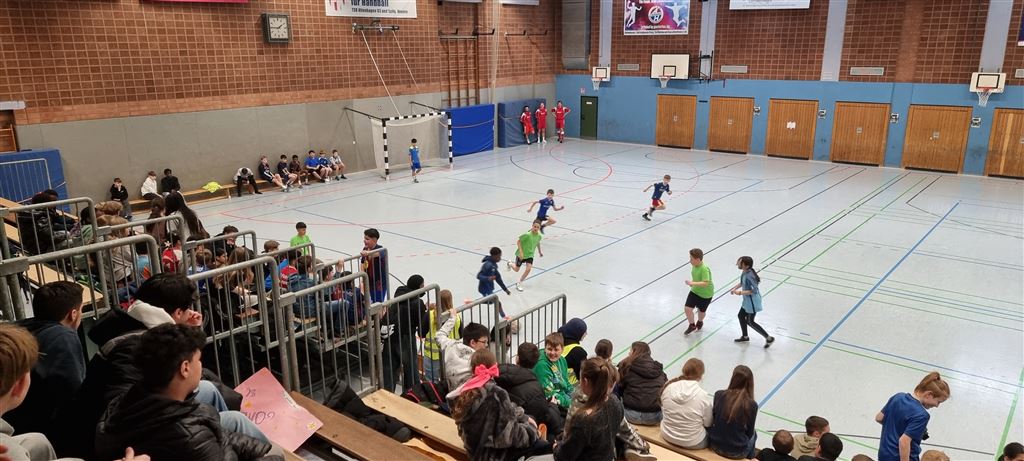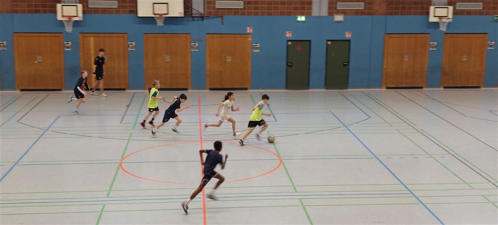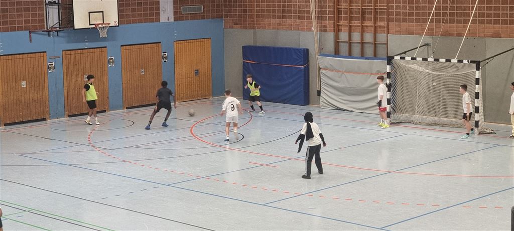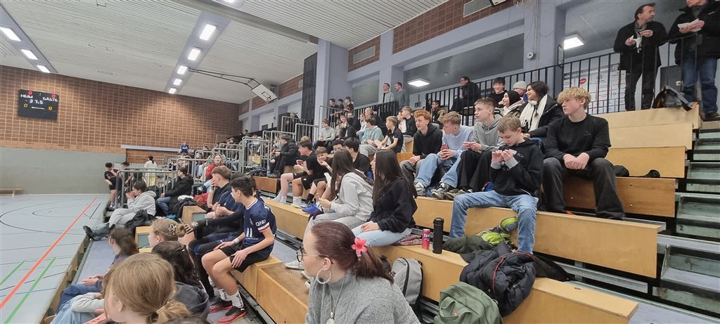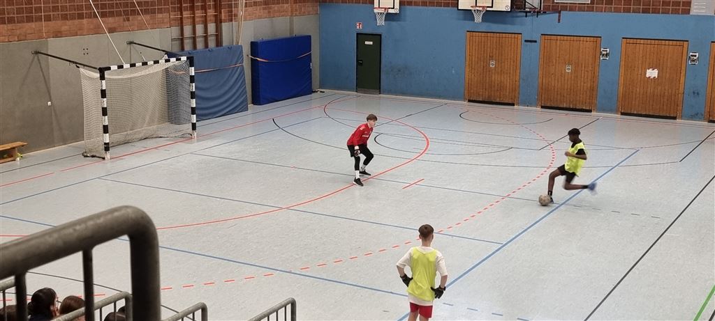 Im Anschluss waren unsere 5er und 6er an der Reihe. In der zweiten Hälfte des Vormittags und im Anschluss an die Mittagspause zeigten sie, was in ihnen steckt. Bei bester Stimmung forderte das begeisterte Publikum seine Helden mit Hilfe von Plakaten und Sprechchören zu Höchstleistungen auf. Leider mussten sich die spielstarken 5er den 6ern geschlagen geben, die durch ihre körperliche Präsenz einfach im Vorteil waren. Letztlich gewann am Nachmittag die 6c in einem spannenden Finale gegen die 6a. Wir gratulieren unseren Nachwuchskickern.