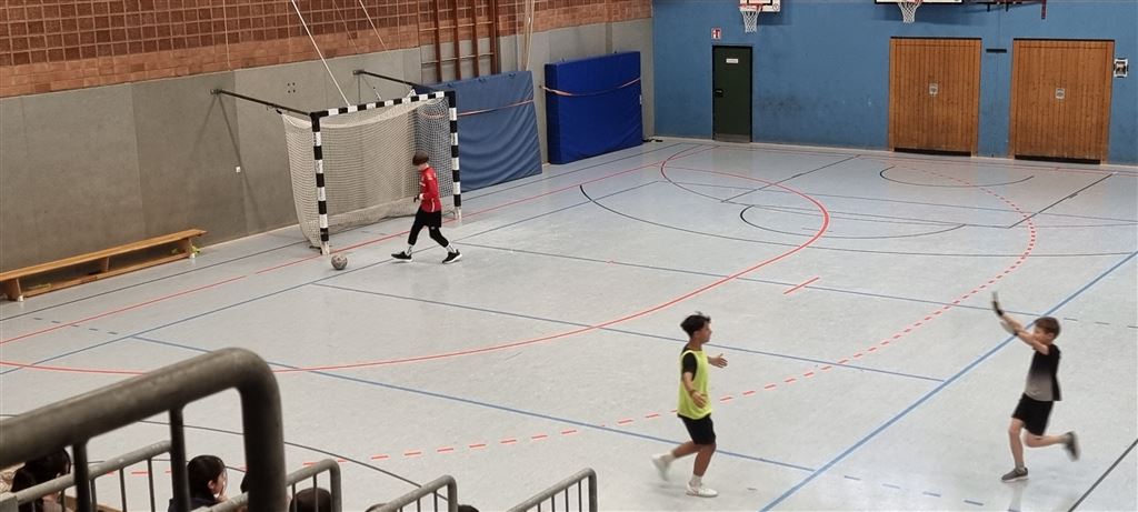 Der zweite Tag stand ganz im Zeichen der Jahrgänge 7 und 8. Spannende Spiele und großartige Leistungen auf dem Spielfeld rundeten die beiden Turniertage ab. Turniersieger des heutigen Tages wurde die 8d nach einem atemberaubenden Spiel mit lediglich einem Tor in der vorletzten Minute. Zuvor zeigte der inoffizielle Torhüter des Turniers aus der 7a etliche Paraden und sicherte so beinahe ein Unentschieden. Erst quasi kurz vor Torschluss, gelang es der 8d ein Penaltyschießen zu verhindern. Letztlich jedoch ein mehr als verdienter Sieg der 8d in diesem spannenden Endspiel. Große Freude gab es auch beim Turnier-Dritten, der 7d, die sich in einem spannenden Penaltyschießen gegen die 8a durchsetzen konnte. Einen herzlichen Glückwunsch!