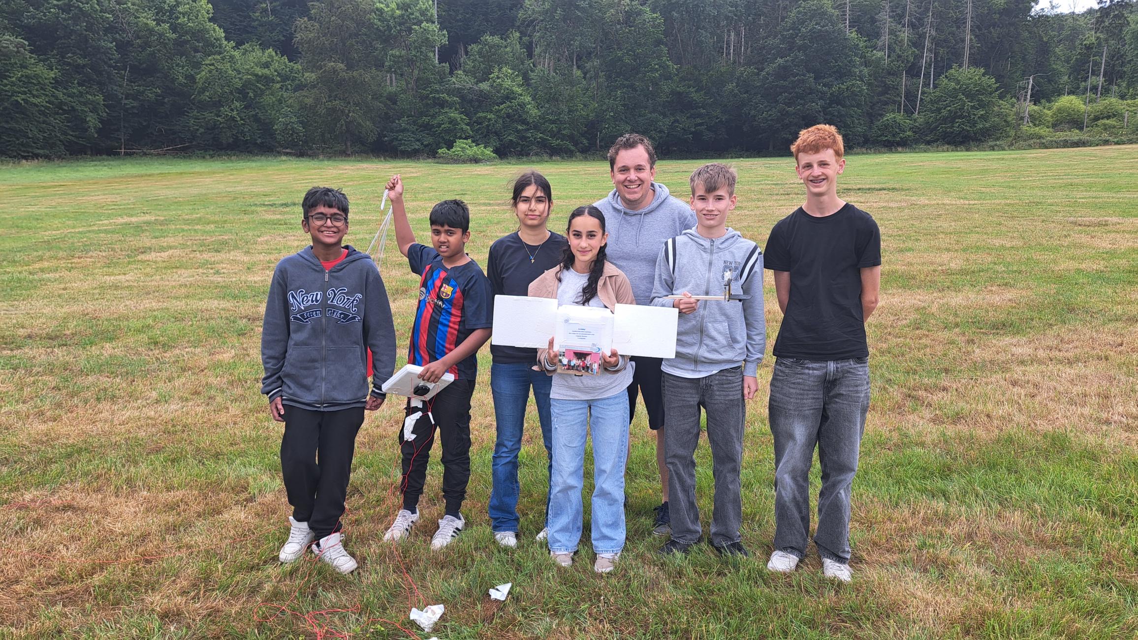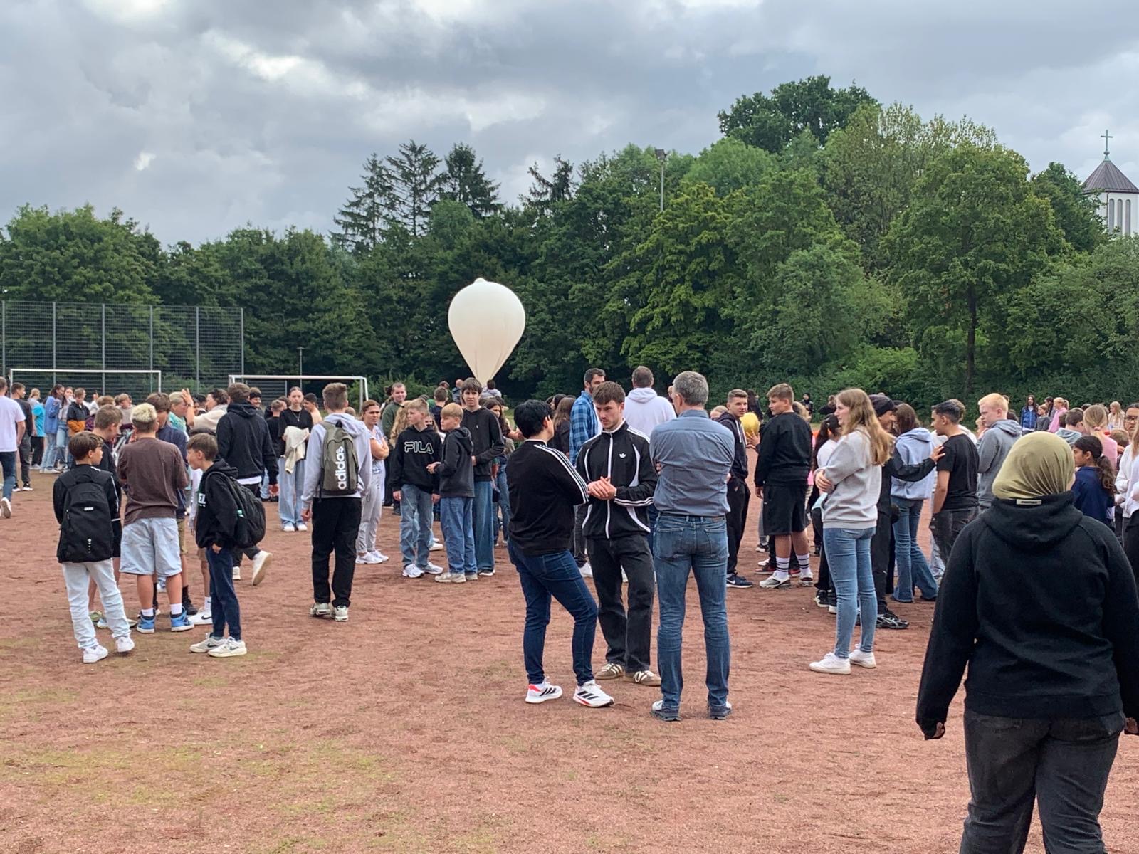 Am vierten Projekttag war es dann so weit: Auf dem Fußballplatz der RSH versammelte sich die gesamte Schulgemeinschaft zum Start. Als Herr Wetzel den Countdown einleitete, zählte die ganze Schule mit – bis der Ballon schließlich in den Himmel aufstieg. Ein Moment, der für Gänsehaut sorgte!